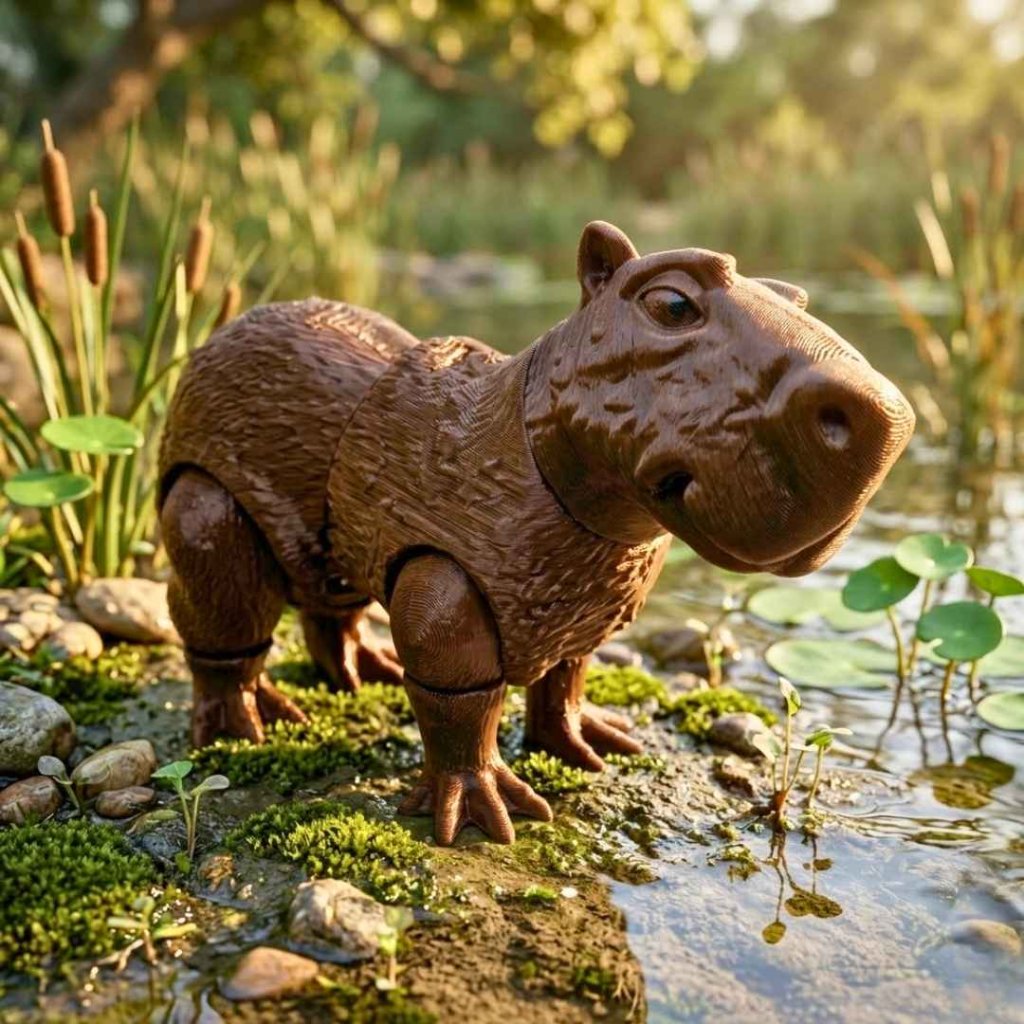 Roztomilá 3D kapybara inspirovaná největším hlodavcem světa, která svým klidným výrazem a detailním zpracováním přinese hravou atmosféru jako originální hračka nebo milý dárek pro děti.