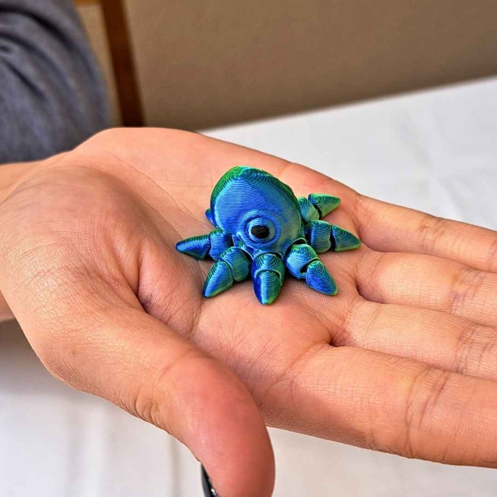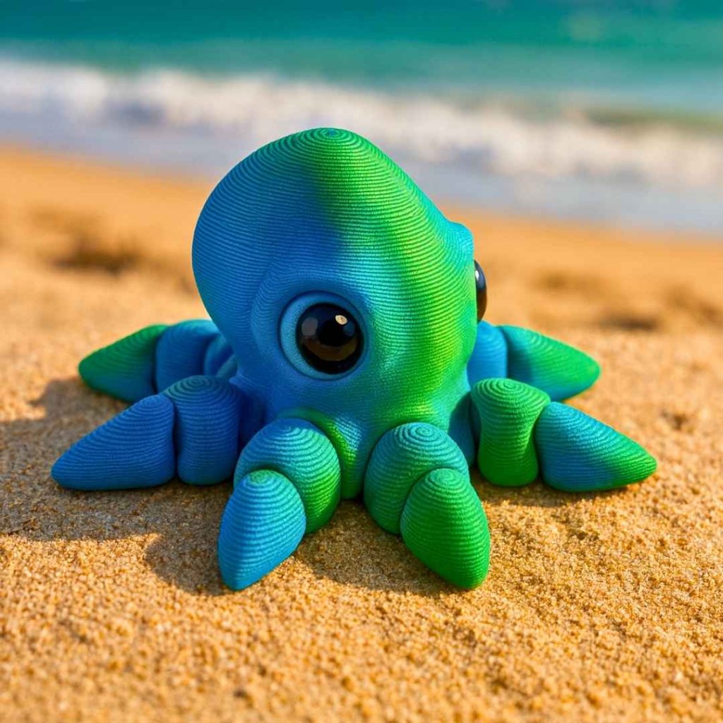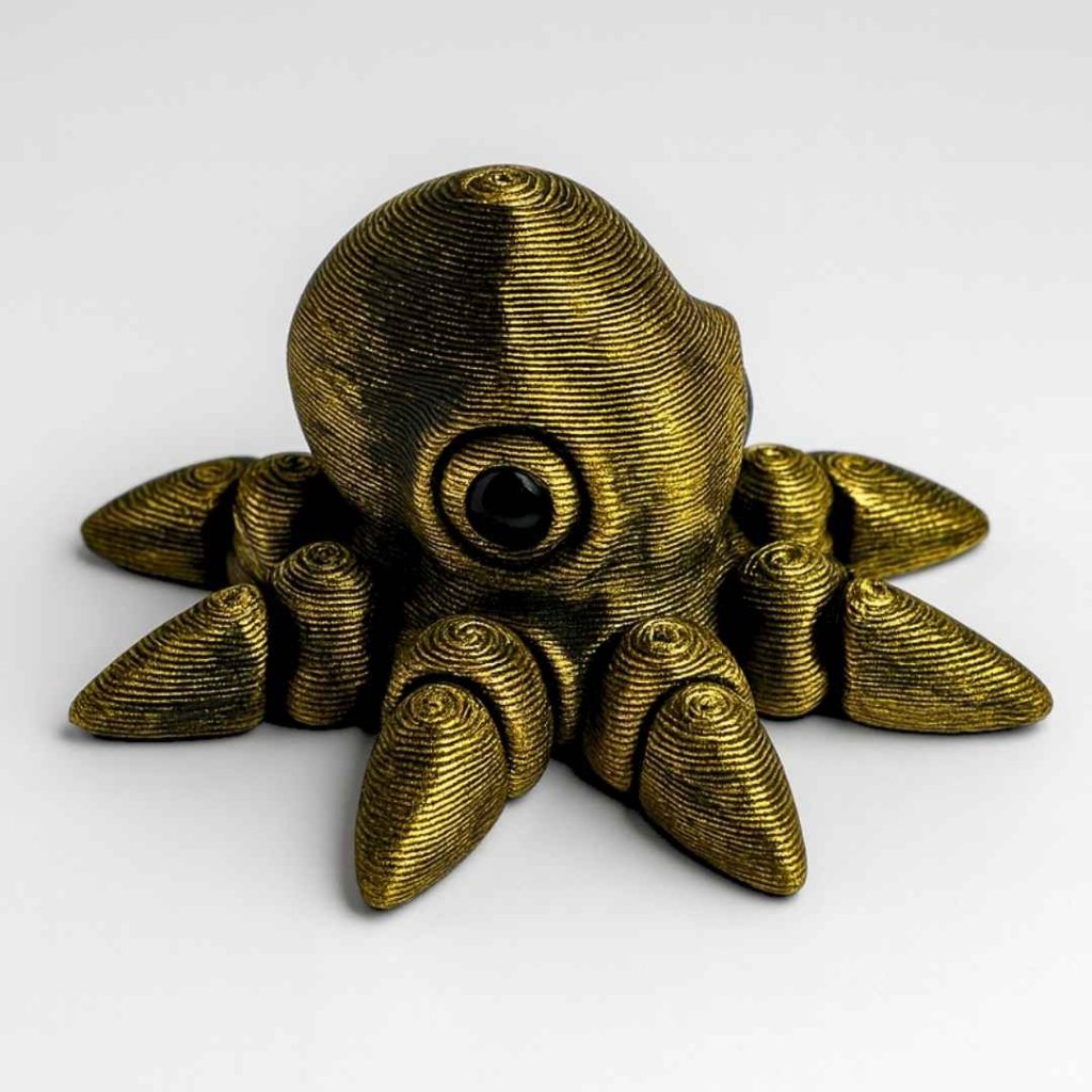 Flexibilní tělíčko chobotničky je s láskou vytištěno v Příbrami na naší 3D tiskárně.
