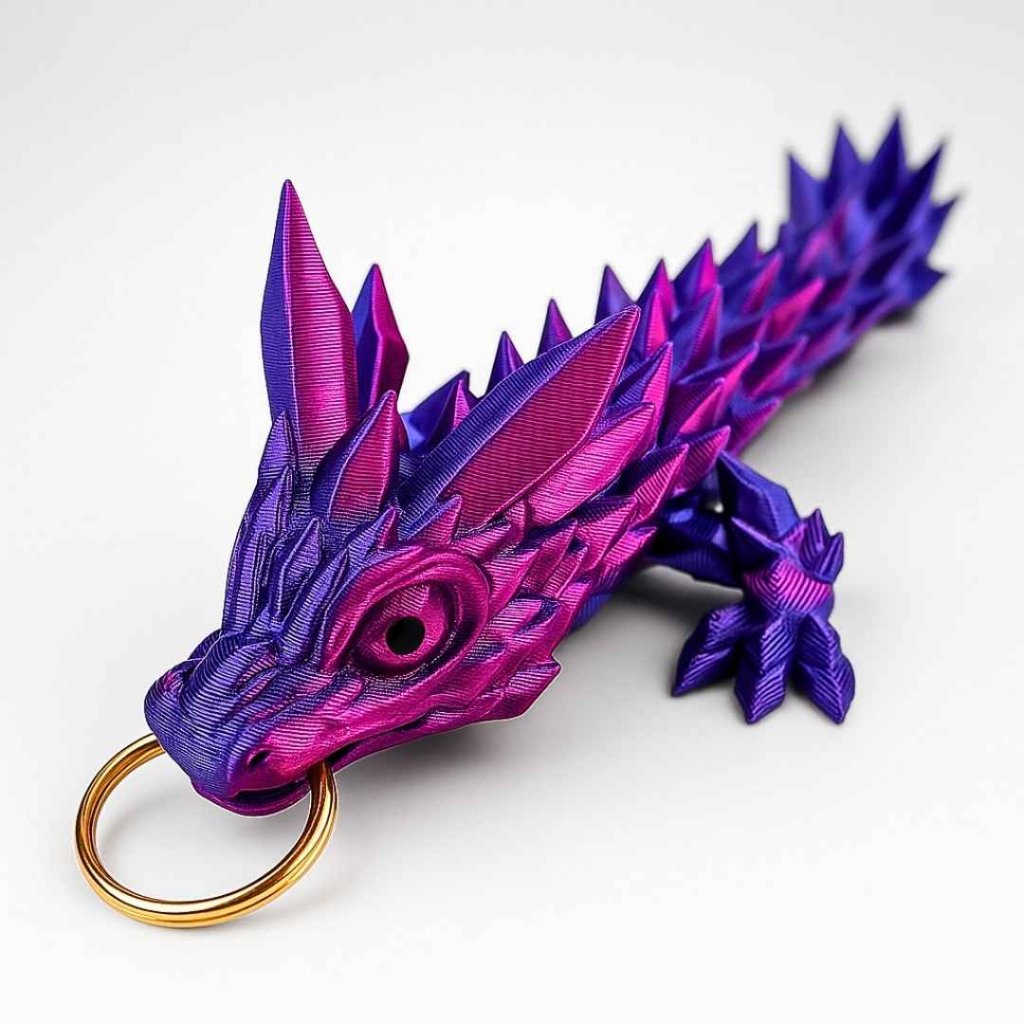 Malý krystalový dráček z 3D tiskárny jako kouzelný přívěsek pro fanoušky fantasy. Pohyblivé mládě draka, jako by právě vyletěl z dračího hnízda. Skvělý jako originální dárek na batůžek nebo klíče.