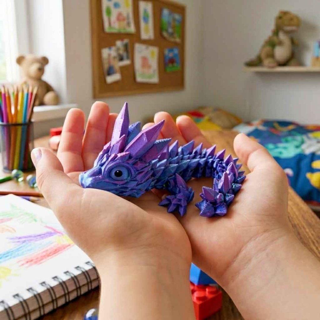 3D mládě krystalového draka okouzlí každého, kdo miluje fantasy. Je to malý, pohyblivý společník, který vypadá, jako by právě vylétl z dračího hnízda. Ať už hledáte originální dárek pro dítě, které miluje draky.
