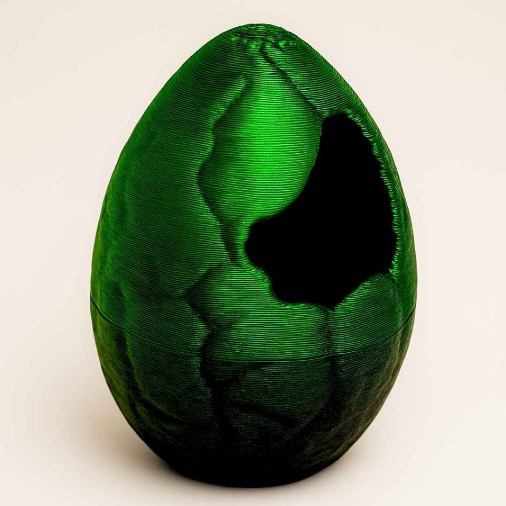Vajíčko působí, jako by se právě vylíhl malý dinosaurus z dávné jurské éry. Texturovaný povrch připomíná pravou skořápku a dodává autentický vzhled.