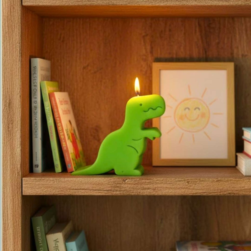 Vonná ručně vyráběná svíčka zobrazuje hodného dinosaura, jehož roztomilý vzhled a přátelský úsměv okouzlí nejen děti, ale i všechny milovníky dinosaurů.