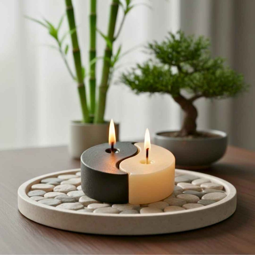 Vonná svíčka, skládající se ze dvou částí, ale prodávaná jako celek. Svíčka pro ty, kteří ocení symboliku Jin Jang, jenž zahrnuje koncept temnoty a světla.