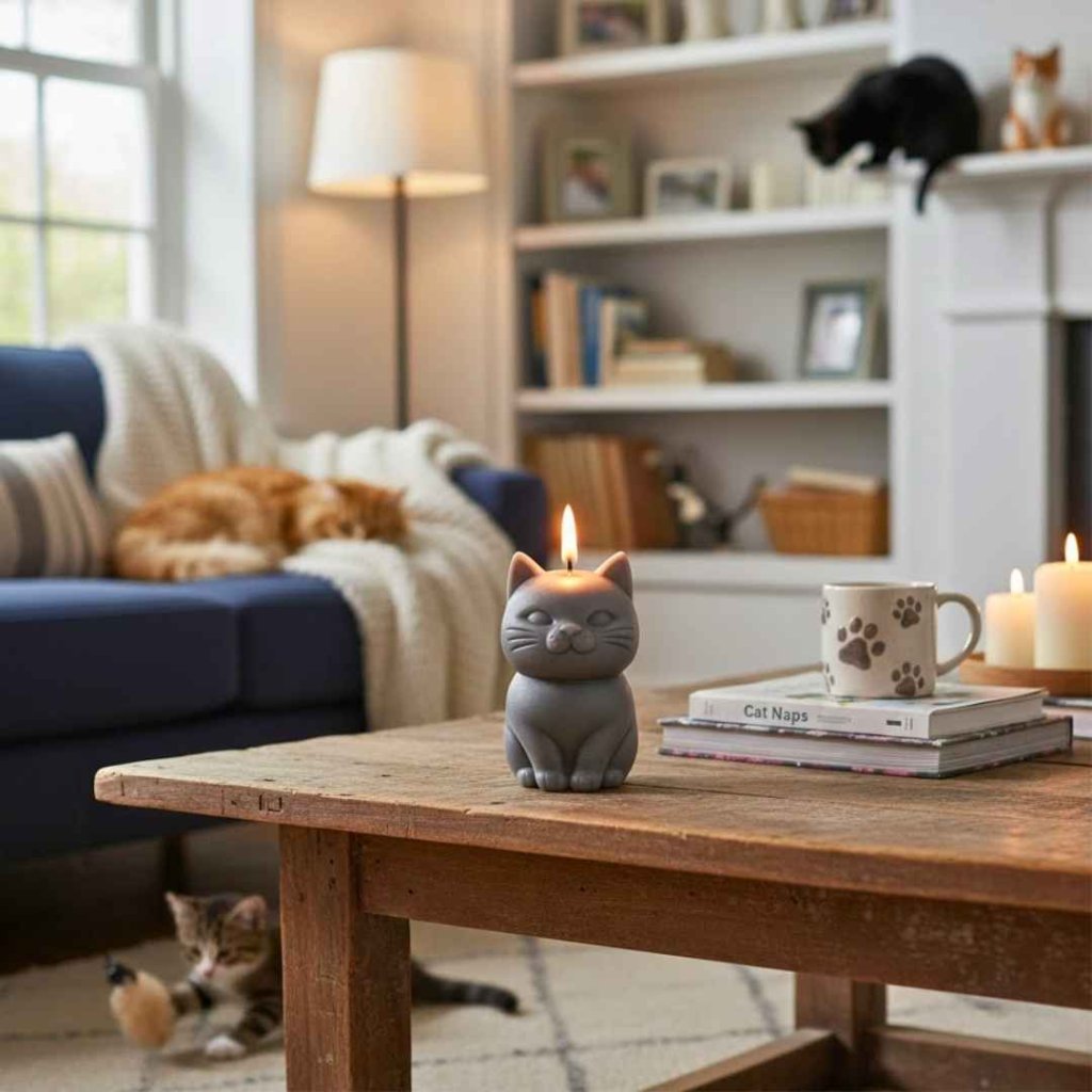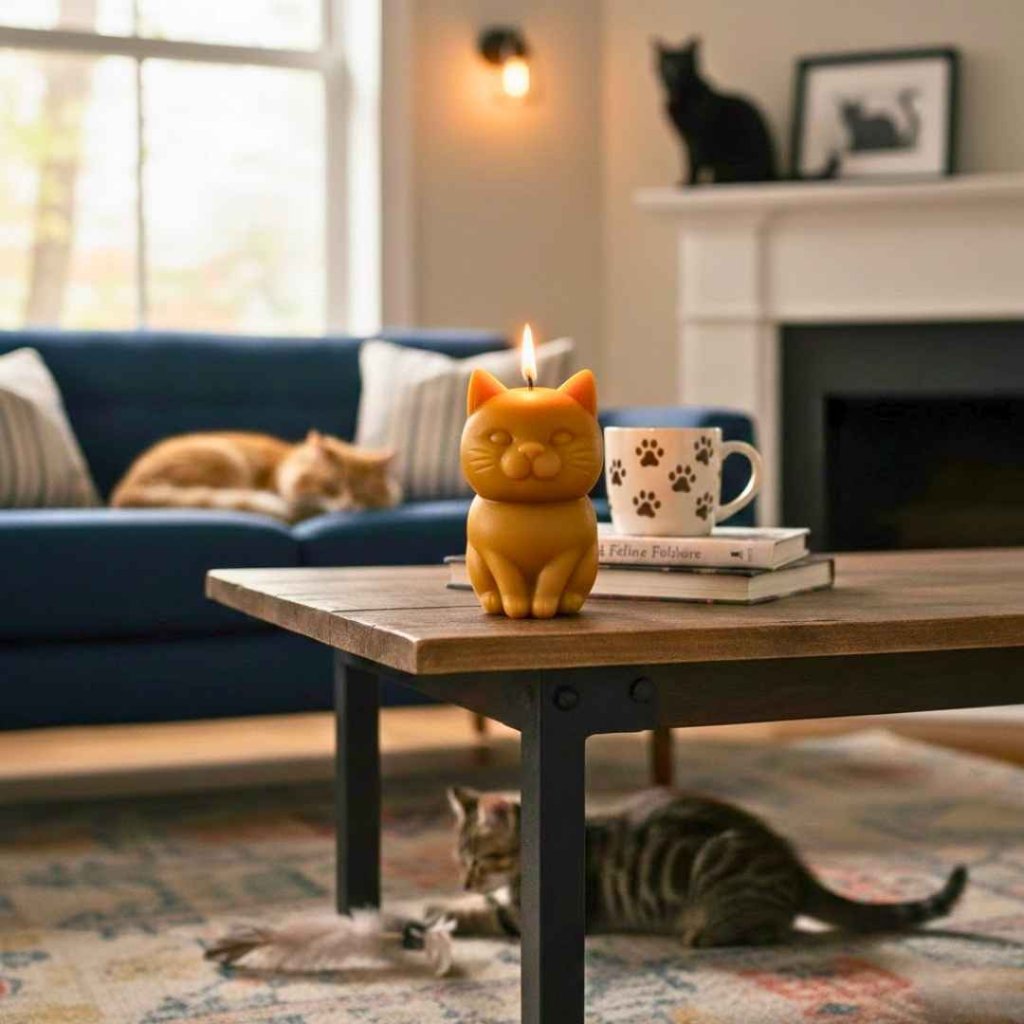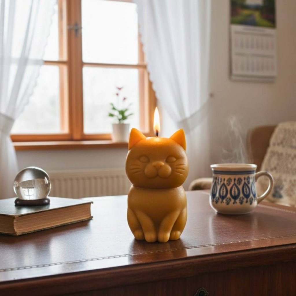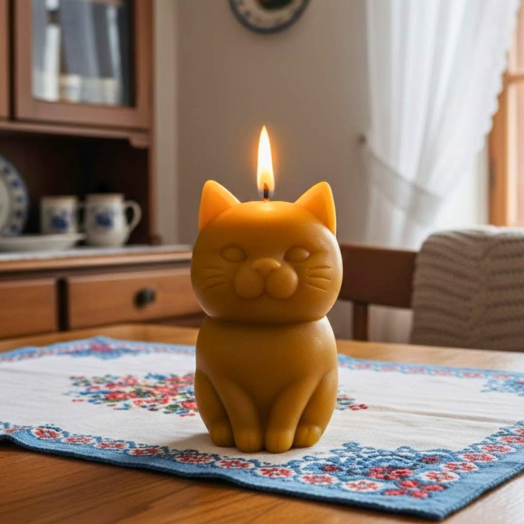 Svíčka ve tvaru kočky hoří přibližně 2 hodiny. Doba hoření se může mírně lišit podle typu vosku a podmínek při hoření.