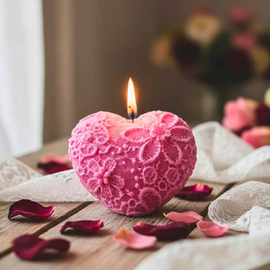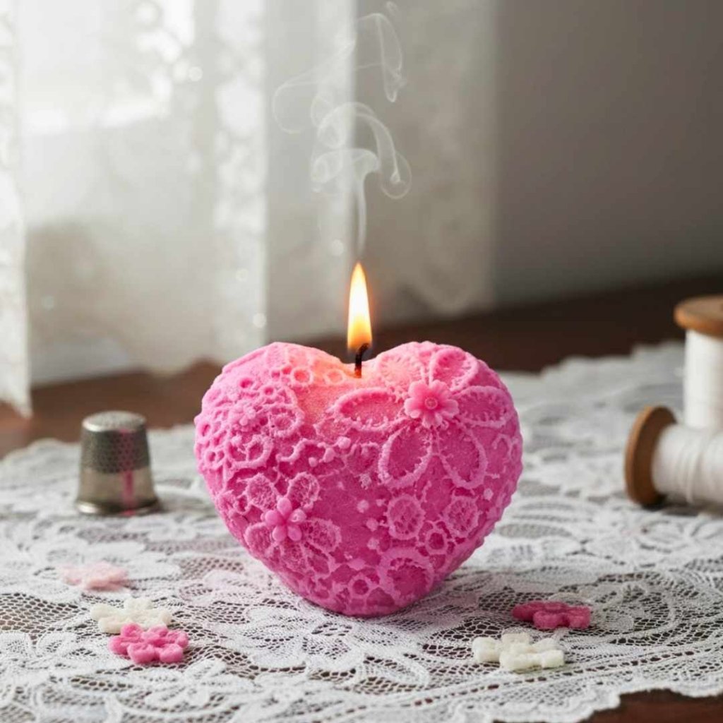 Svíčka ve tvaru krajkového srdíčka hoří přibližně 2 hodiny, ale doba hoření se může lišit v závislosti na několika faktorech, jako je výběr vosku a podmínky při hoření.