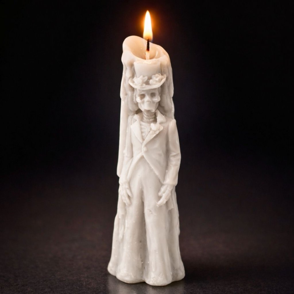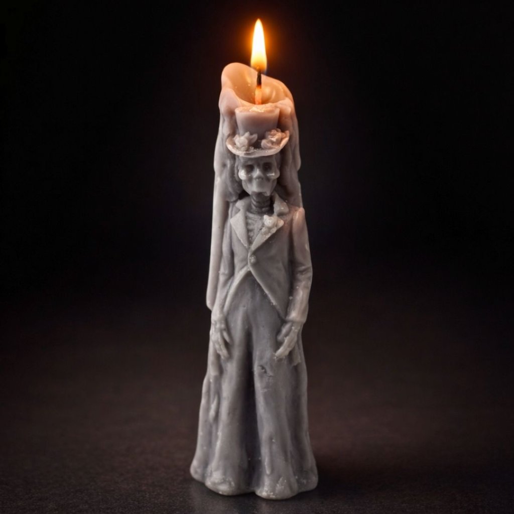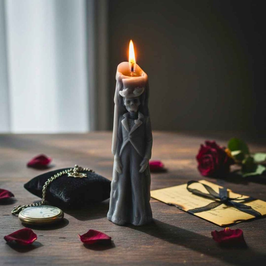 Svíčka ve tvaru mrtvého ženicha hoří přibližně 2 hodiny, ale doba hoření se může lišit v závislosti na několika faktorech, jako je výběr vosku a podmínky při hoření.
