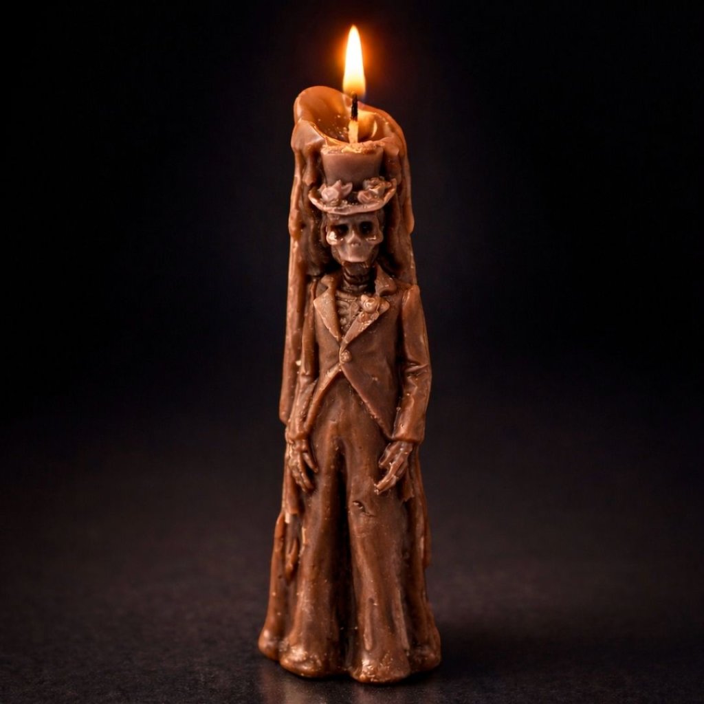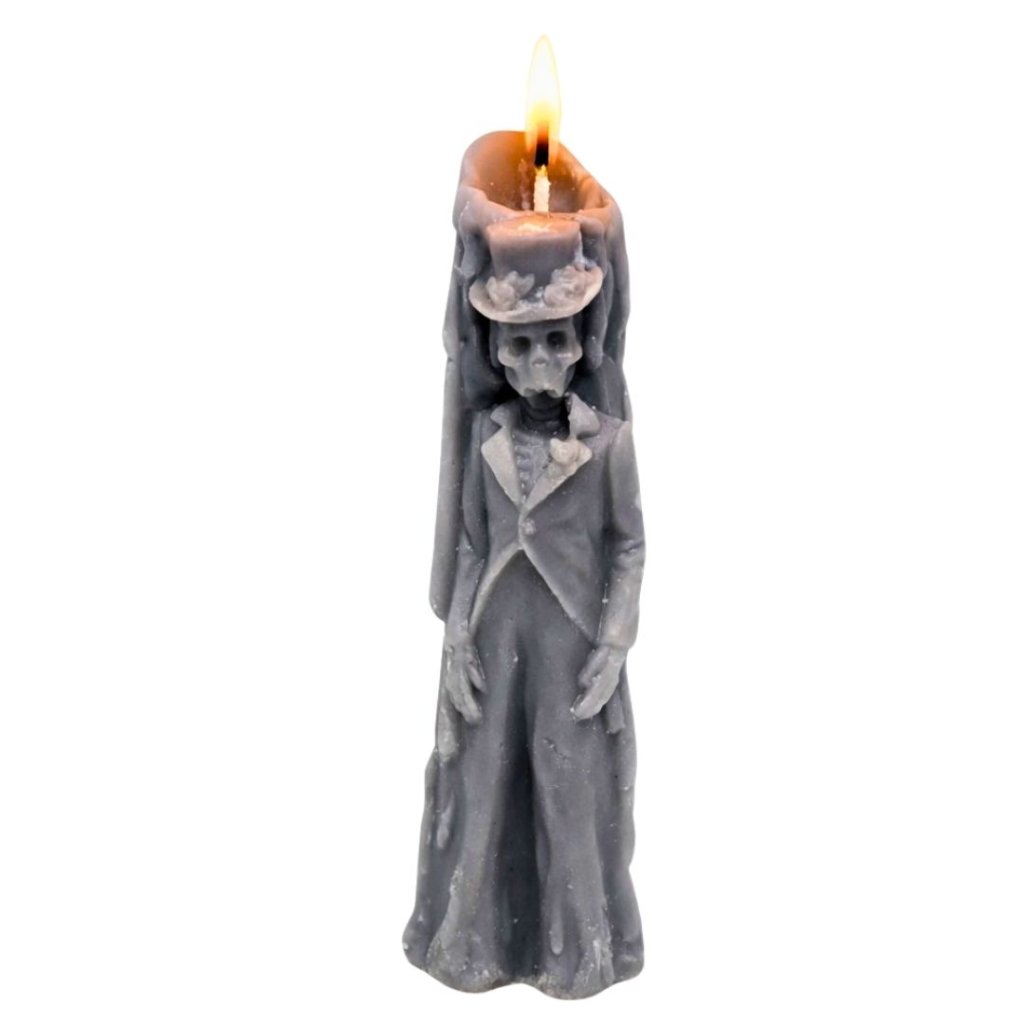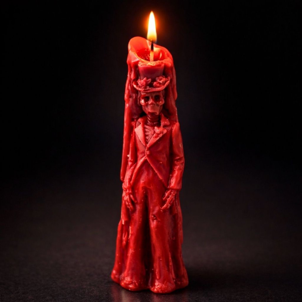Svíčka ve tvaru mrtvého ženicha hoří přibližně 2 hodiny, ale doba hoření se může lišit v závislosti na několika faktorech, jako je výběr vosku a podmínky při hoření.
