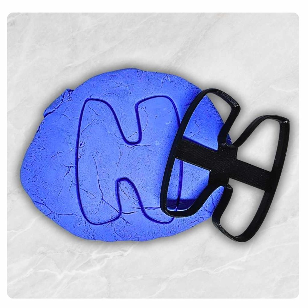 Plastové vykrajovátko, ve tvaru písmenka N vyrobeného z certifikovaného plastu vhodného pro styk s potravinami.