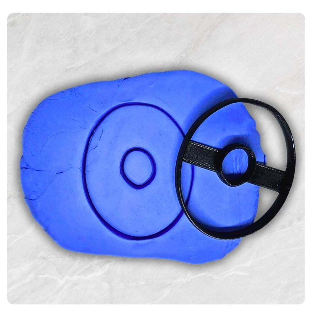 Plastové vykrajovátko, ve tvaru písmenka O vyrobeného z certifikovaného plastu vhodného pro styk s potravinami.