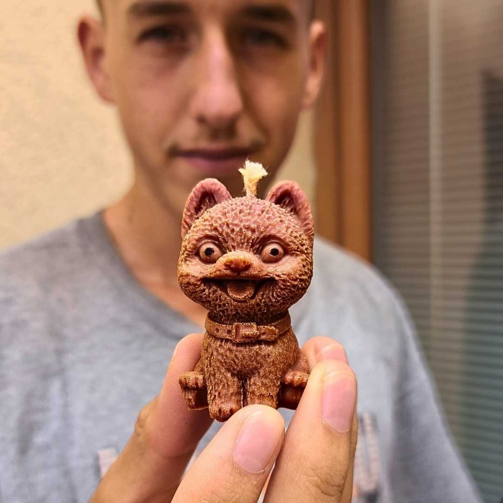 Originální handmade vonná svíčka Pejsek je nádhernou dekorací, která potěší všechny milovníky psů. Svíčka pejska je ideální pro každého, kdo rád vyjadřuje lásku ke zvířatům prostřednictvím dekorací. Perfektní jako dárek pro pejskaře, jako ozdoba do dětských pokojů nebo jako veselý doplněk na stůl, který vykouzlí úsměv pokaždé, když se na něj podíváte.