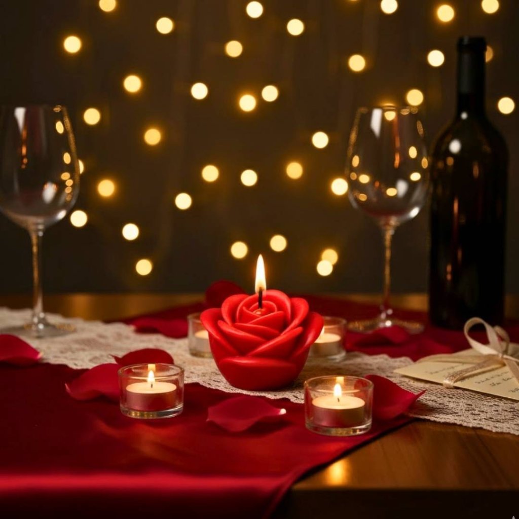 Svíčka ve tvaru růže hoří přibližně 4 hodiny. Doba hoření se může mírně lišit podle typu vosku a podmínek při hoření.