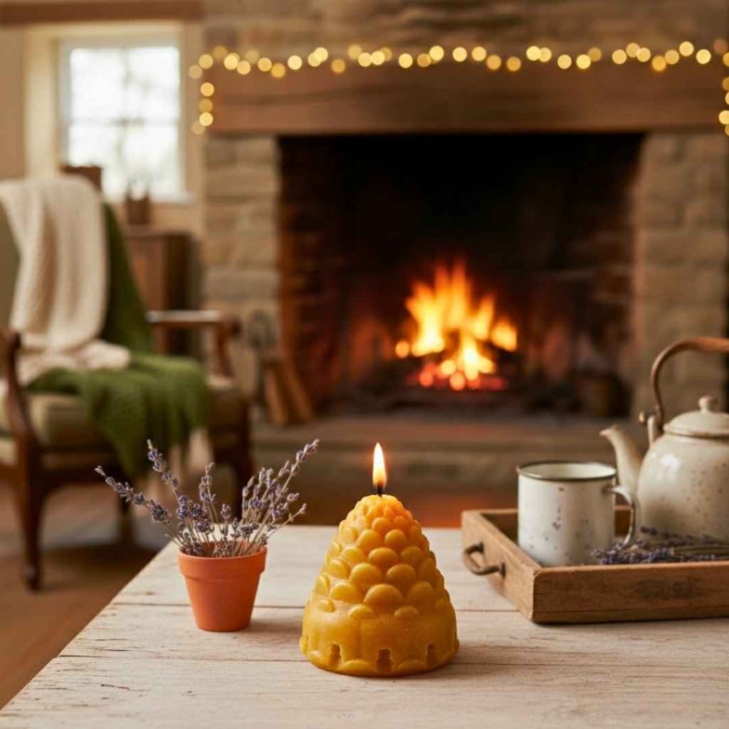 Svíčka ve tvaru šišky hoří přibližně 3 hodiny. Doba hoření se může mírně lišit podle typu vosku a podmínek při hoření.