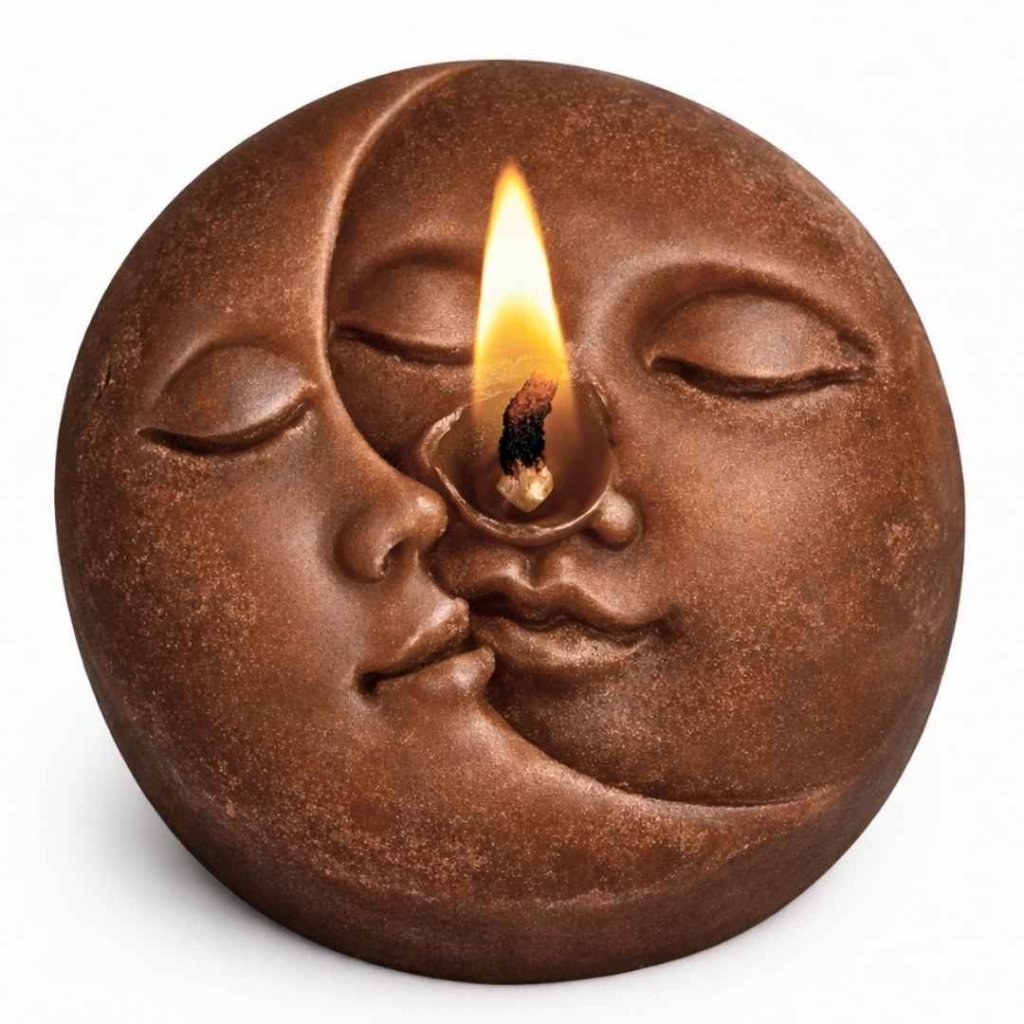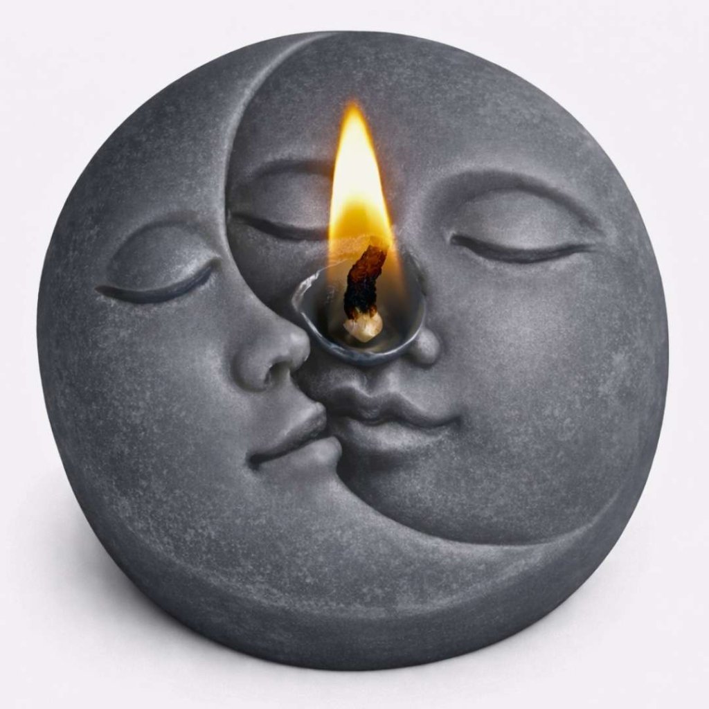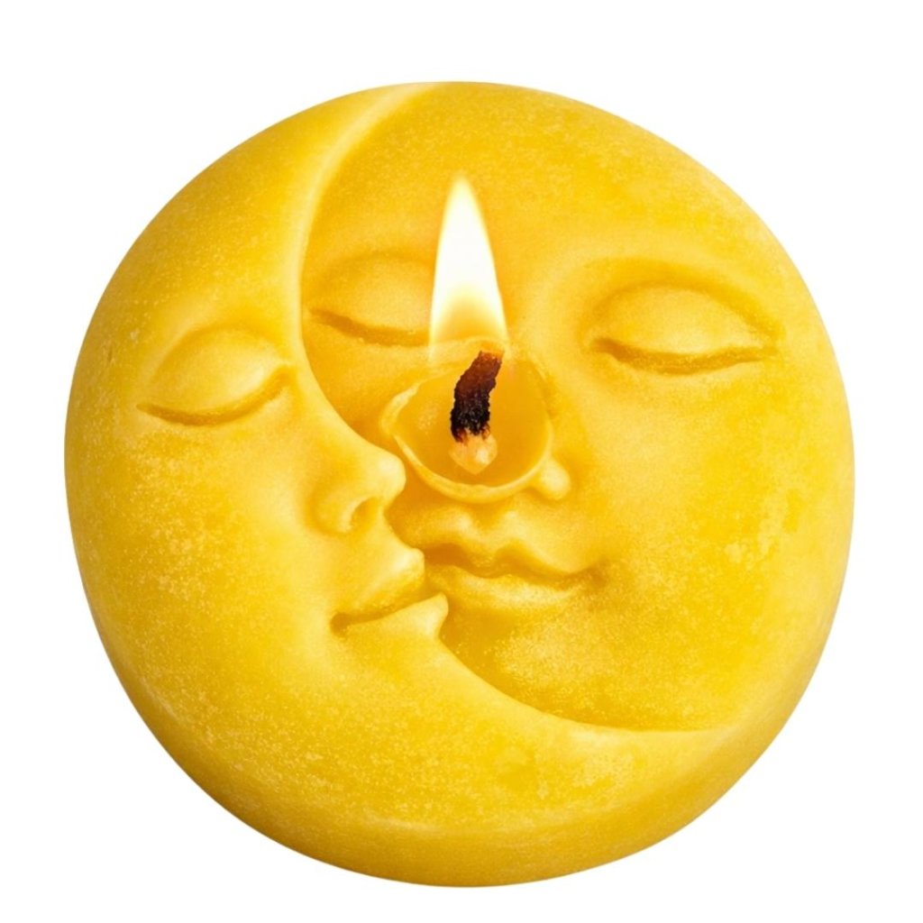 Vonná svíčka se symblem slunce symbolizuje životní sílu, energii a ctnost, zatímco Měsíc odráží emoce, vášně a proměnlivost.