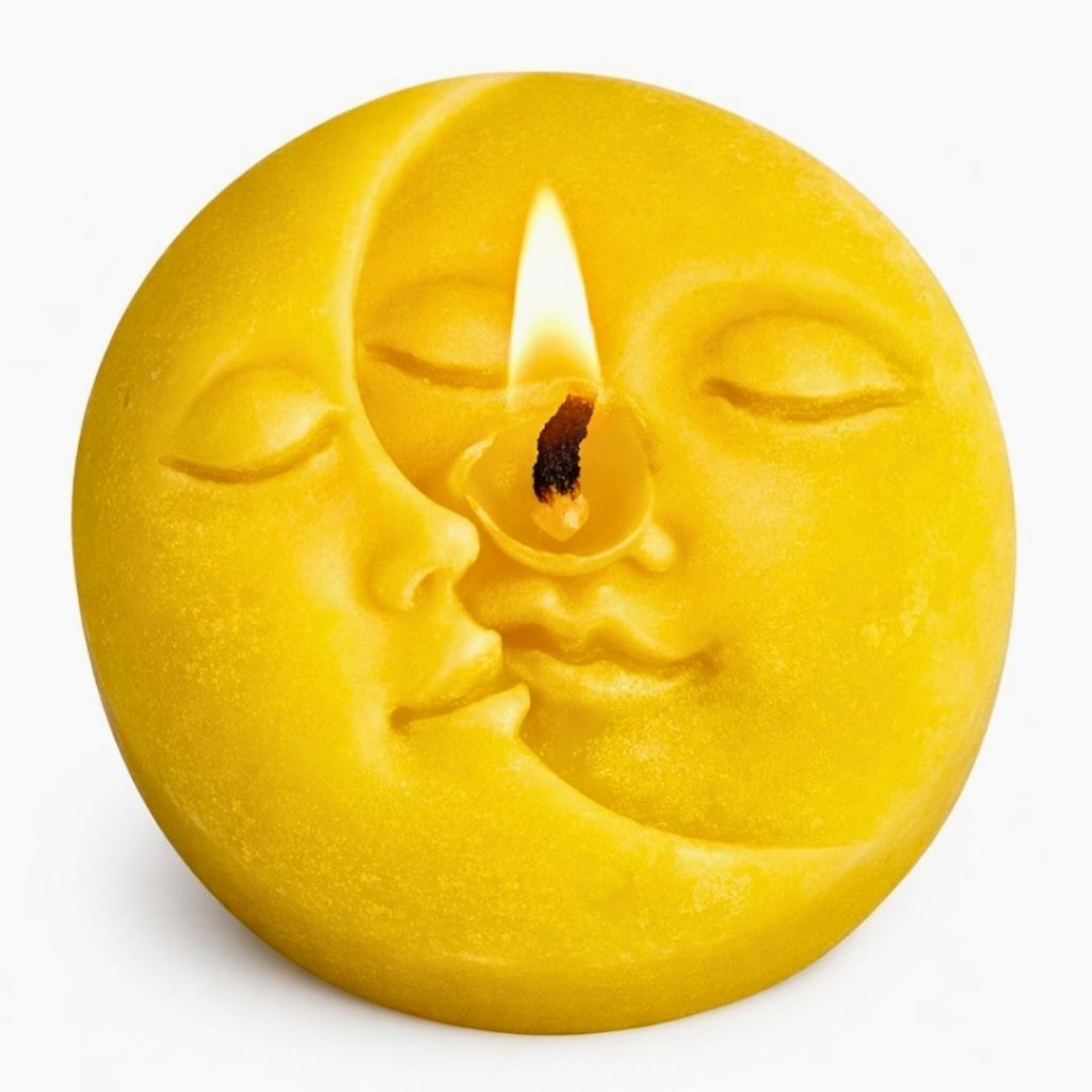 Svíčka ve tvaru slunce a měsíce hoří přibližně 1,5 hodiny. Doba hoření se může mírně lišit podle typu vosku a podmínek při hoření.
