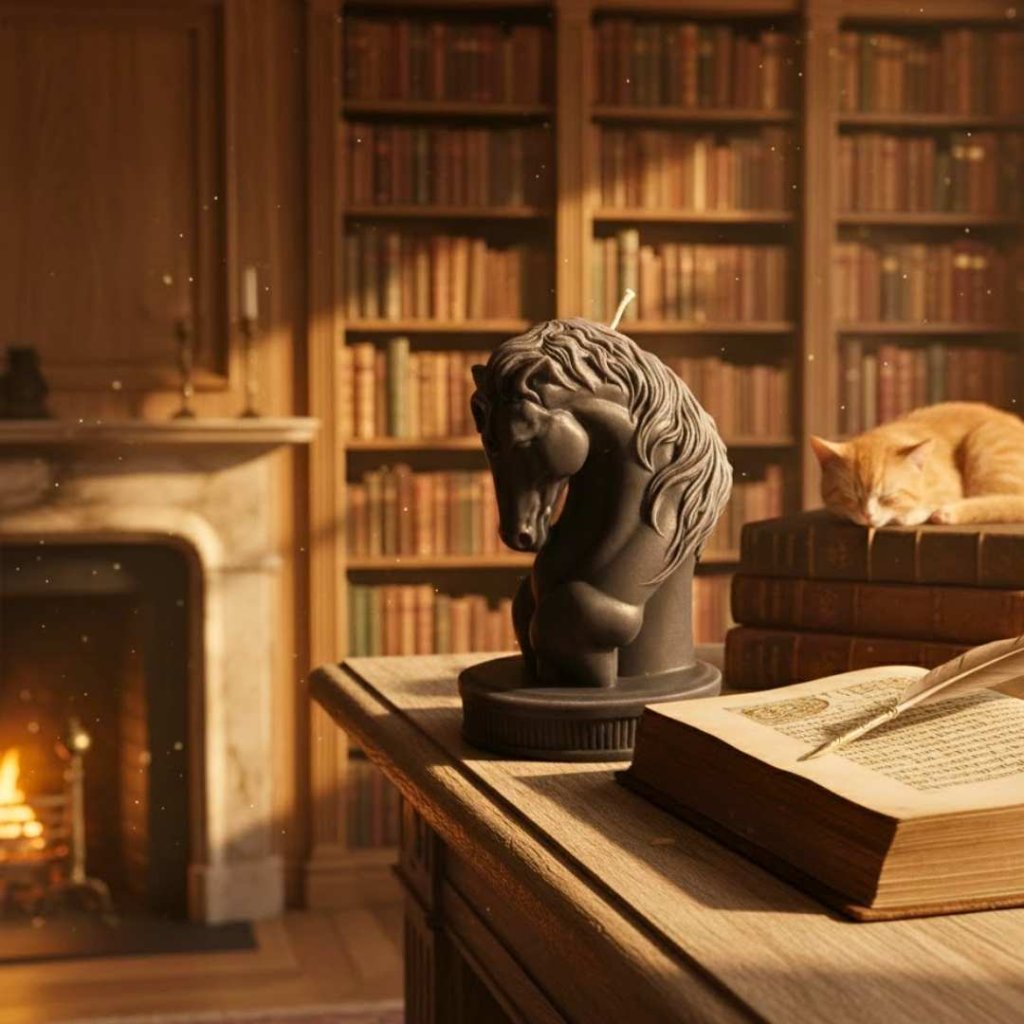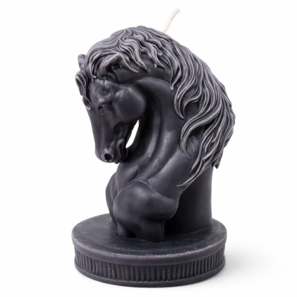 Ručně vyráběná svíčka ze sójového vosku ve tvaru majestátního koně.