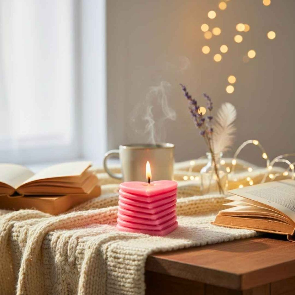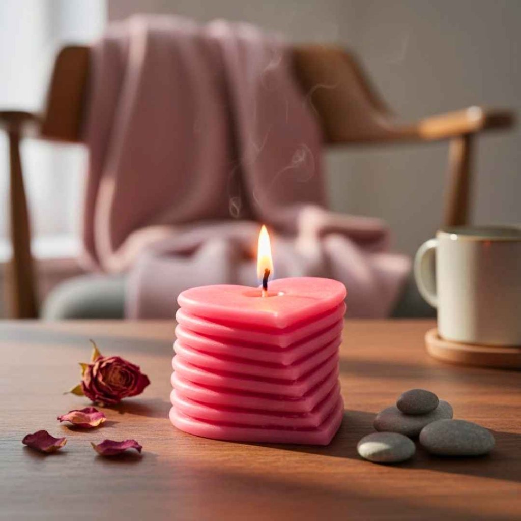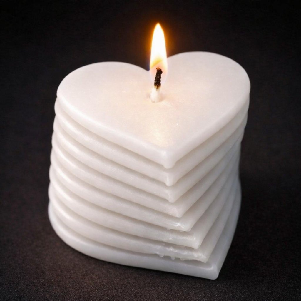Každé srdce na vonné ručně vyrobené svíčce je pečlivě umístěno na sobě, vytvářející elegantní a stylový design, který okouzlí každý prostor.