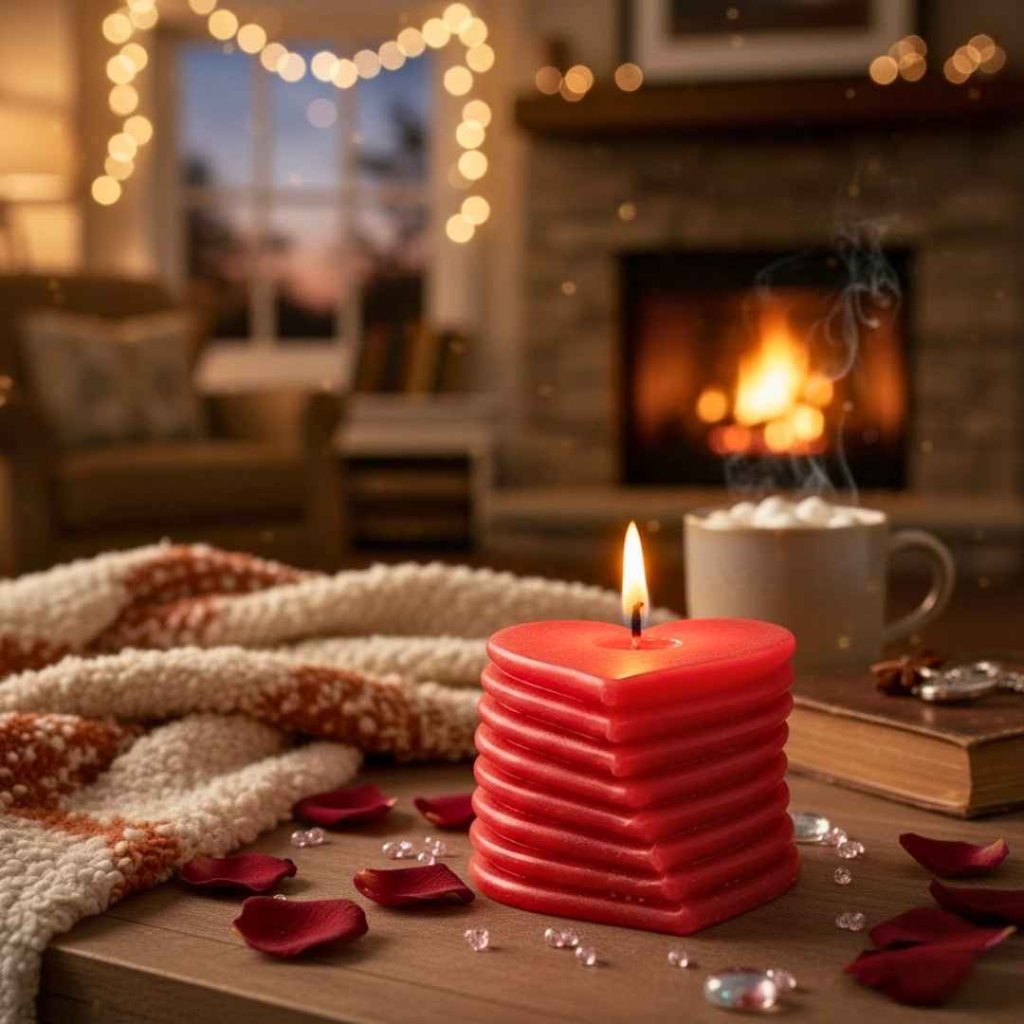 Svíčka ve tvaru srdcí ve sloupu hoří přibližně 2 hodiny. Doba hoření se může mírně lišit podle typu vosku a podmínek při hoření.