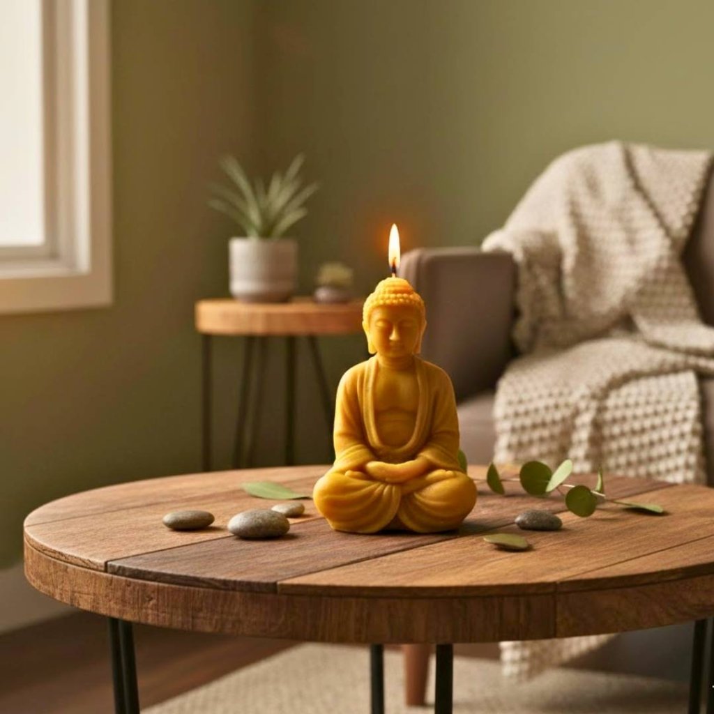 Svíčka ve tvaru Velkého Budhy hoří přibližně 5 hodin. Doba hoření se může mírně lišit podle typu vosku a podmínek při hoření.